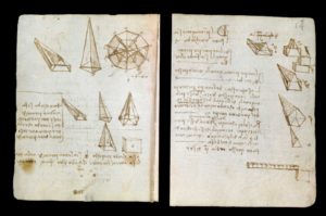 “The notebooks remind us that Leonardo was as much an engineer as he was an artist. When he wrote in the early 1480s to Ludovico Sforza, then ruler of Milan, to offer him his services, he advertised himself as a military engineer, only briefly mentioning his artistic skills at the end of the list,” Yvard says.