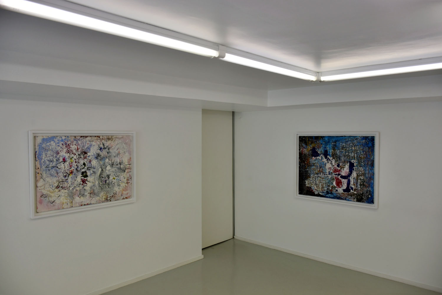 خاکستریهای رنگی در همه فضای تابلوها در حال چرخش هستند و محیطی یکدست را به وجود آوردهاند. قابهایی که برای این تابلوها انتخاب شده است نیز ارتباط زیادی با سوژه آثار دارند. نوارهای آلومینیومی که نوعی دیگر از مصالح ساختمانی هستند با پیچهایی به یکدیگر متصل شده و فضای نقاشی را در برگرفتهاند.